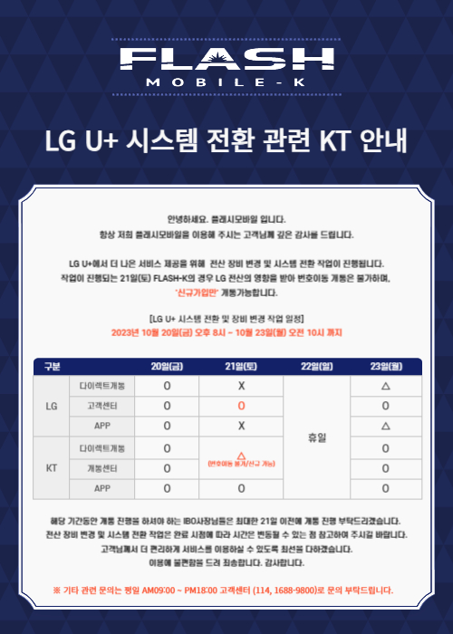 FLASH MOBILE - K 개통을 희망하는 고객님은 고객센터 1688-9800 (ARS 2번)으로 문의 하세요.